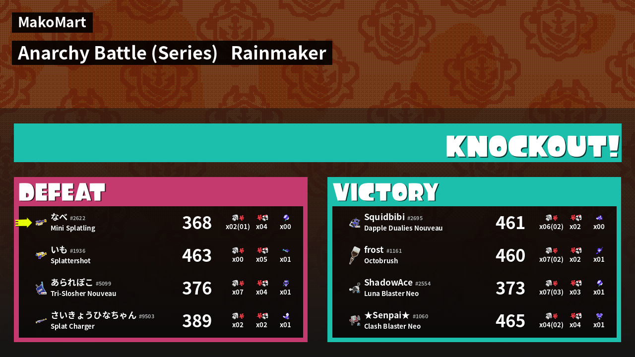 | Mode | Rainmaker - Anarchy Battle (Series) | ||