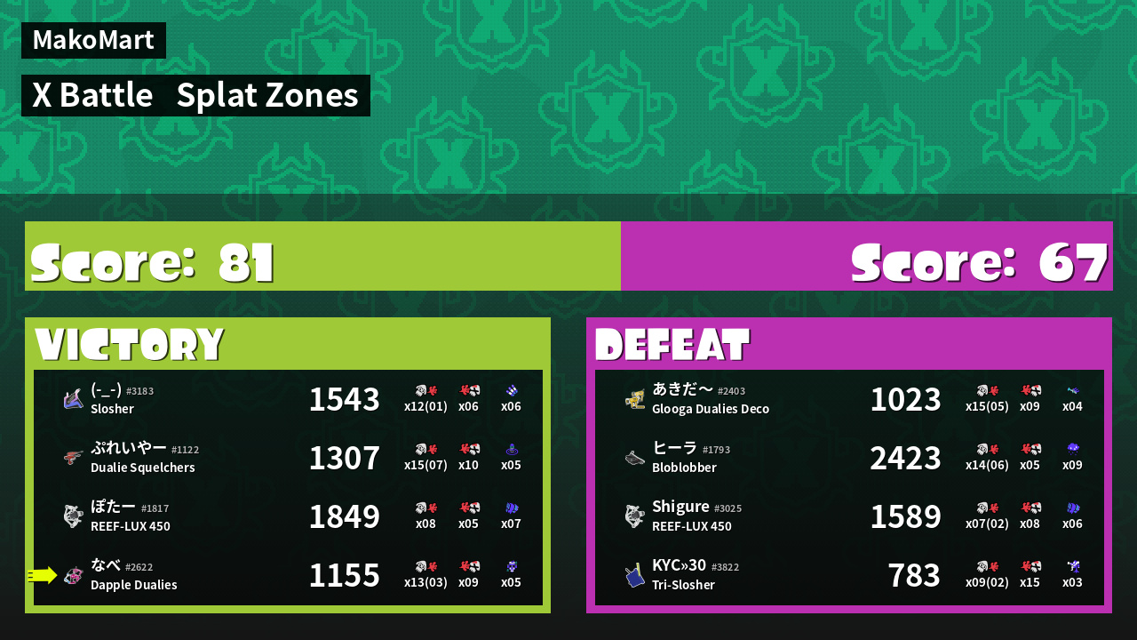 | Mode | Splat Zones - X Battle | ||