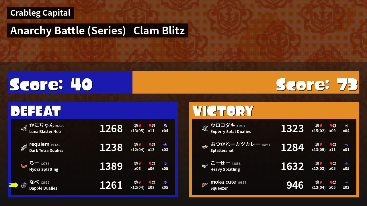 | Mode | Clam Blitz - Anarchy Battle (Series) | ||