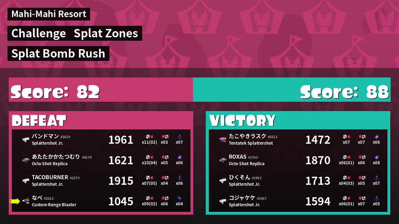 | Challenge | Splat Bomb Rush Let the Splat Bombs fly in this free-for-all! | ||