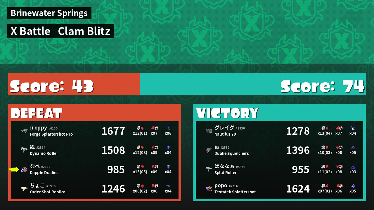 | Mode | Clam Blitz - X Battle | ||