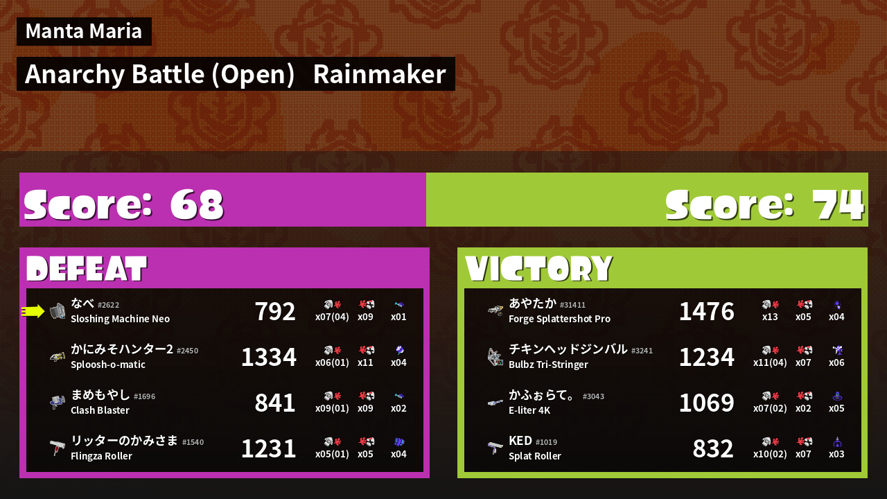 | Mode | Rainmaker - Anarchy Battle (Open) | ||