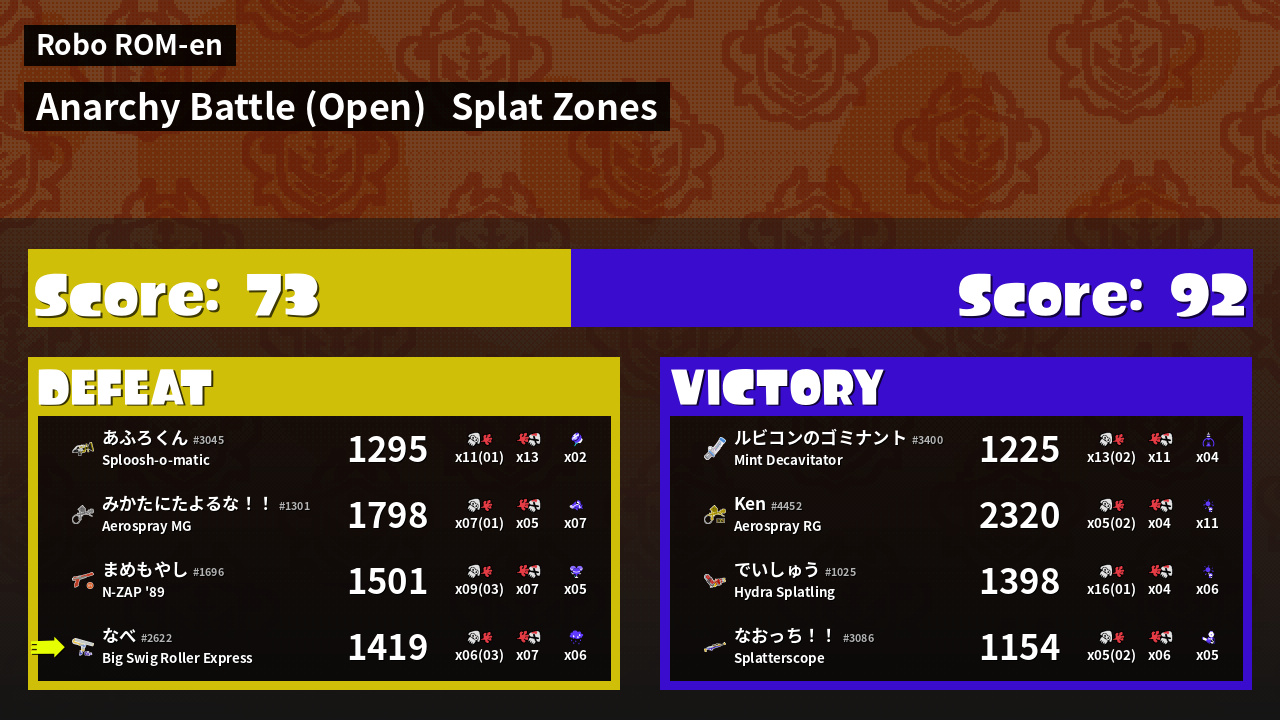 | Mode | Splat Zones - Anarchy Battle (Open) |
