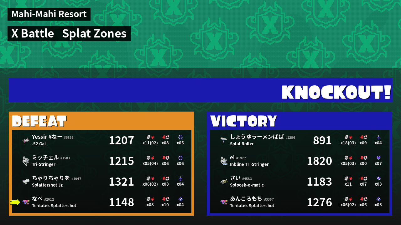 | Mode | Splat Zones - X Battle | ||