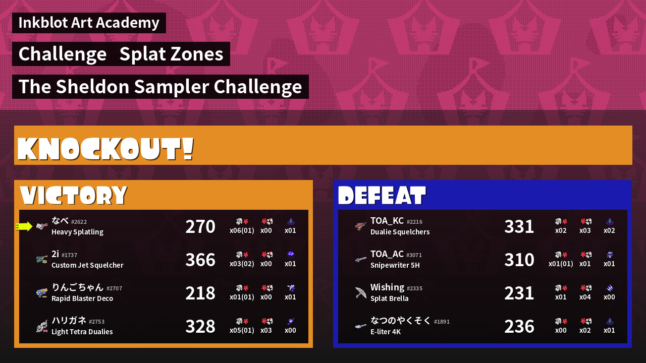 | Medals | #1 Overall Splatter #1 Splat Zone Guard #1 Popular Target | ||