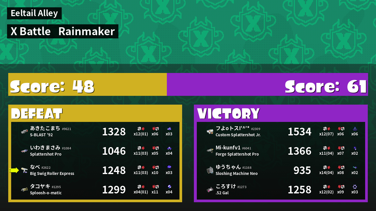 | Mode | Rainmaker - X Battle | ||