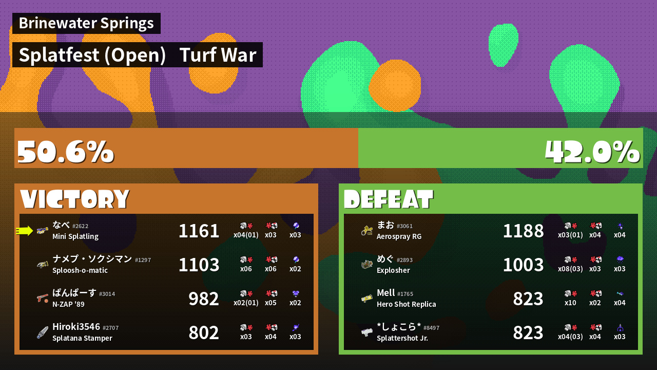 | Medals | #1 Turf Inker #1 Splat Assister #1 Ink Consumer | ||