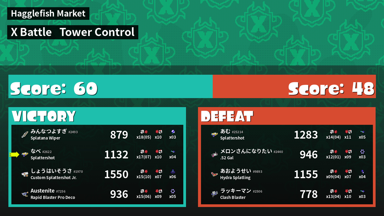 | Mode | Tower Control - X Battle | ||