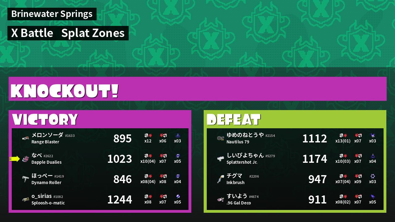 | Medals | #1 Super Jump Spot #1 Splat Assister #1 Ground Traveler | ||