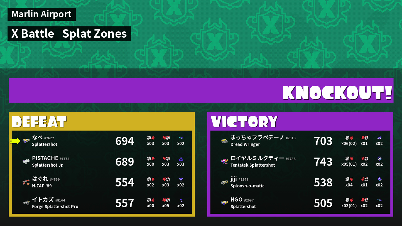 | Medals | #1 Overall Splatter #1 Turf Inker #1 Enemy Splatter | ||