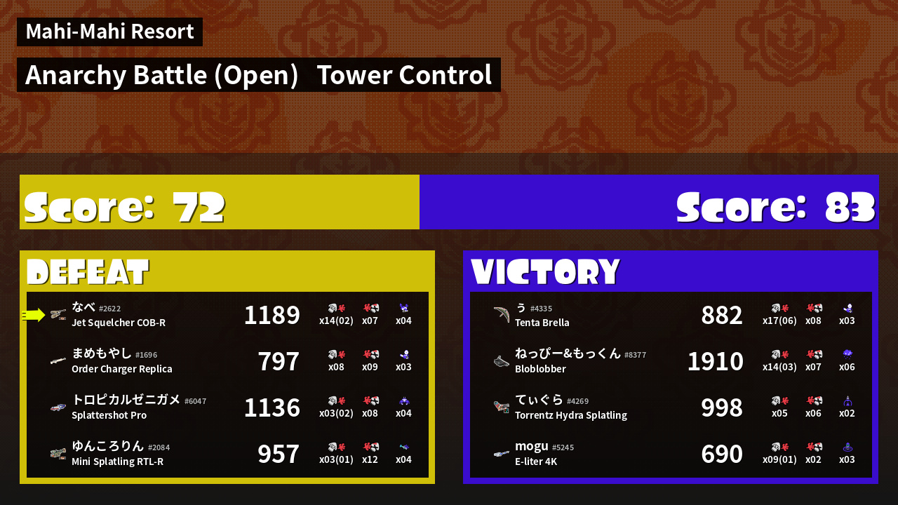 | Mode | Tower Control - Anarchy Battle (Open) |