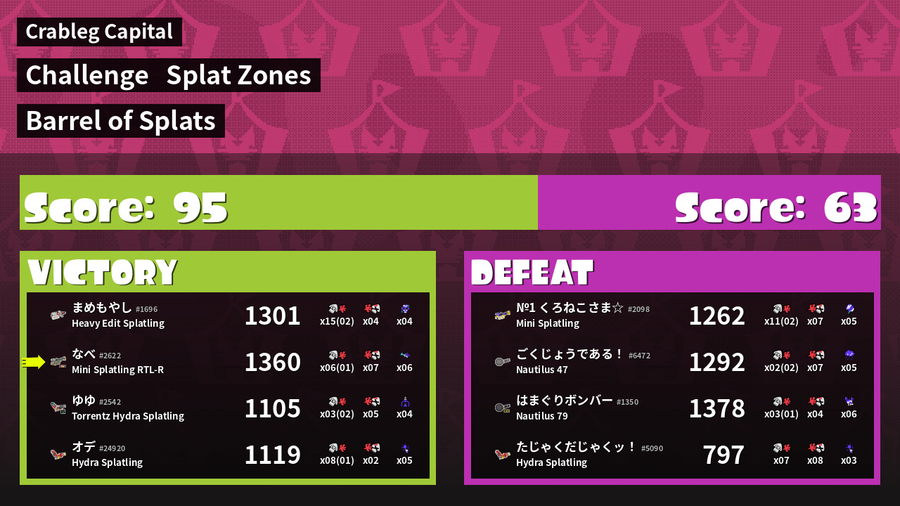 | Challenge | Barrel of Splats Muster as much firepower as you can<br />in this battle of the splatlings! | ||