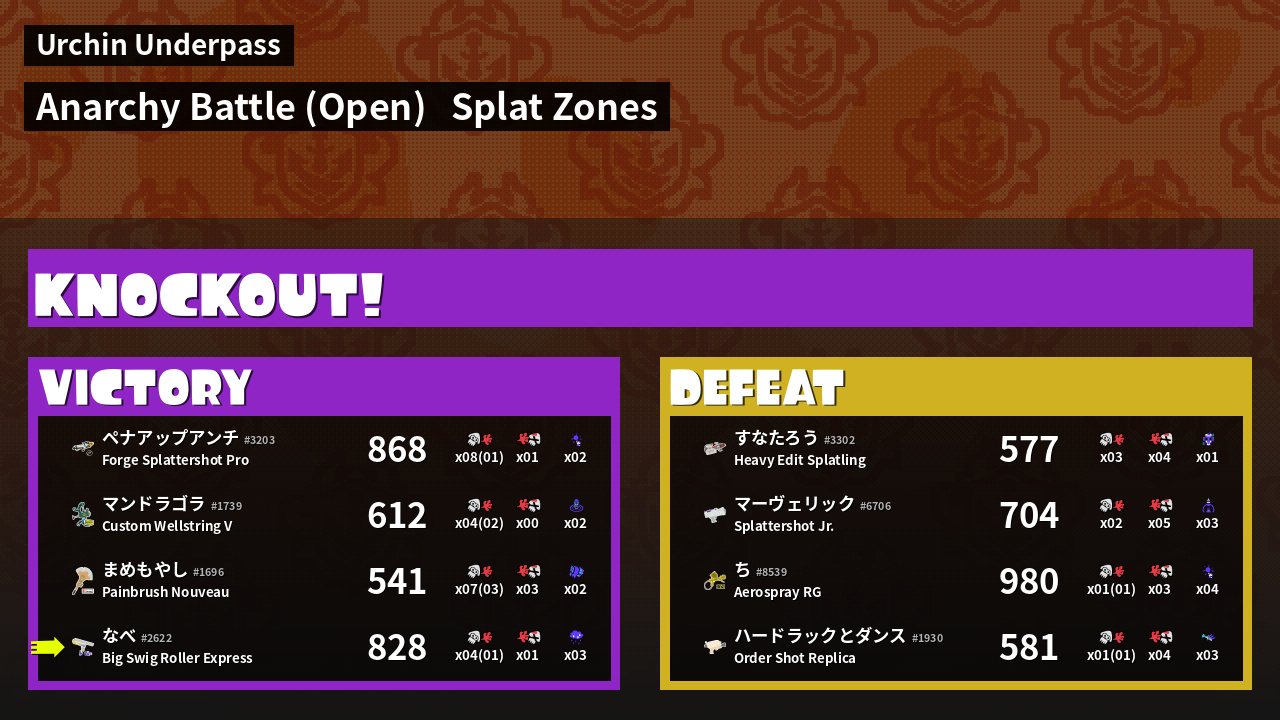 | Mode | Splat Zones - Anarchy Battle (Open) |