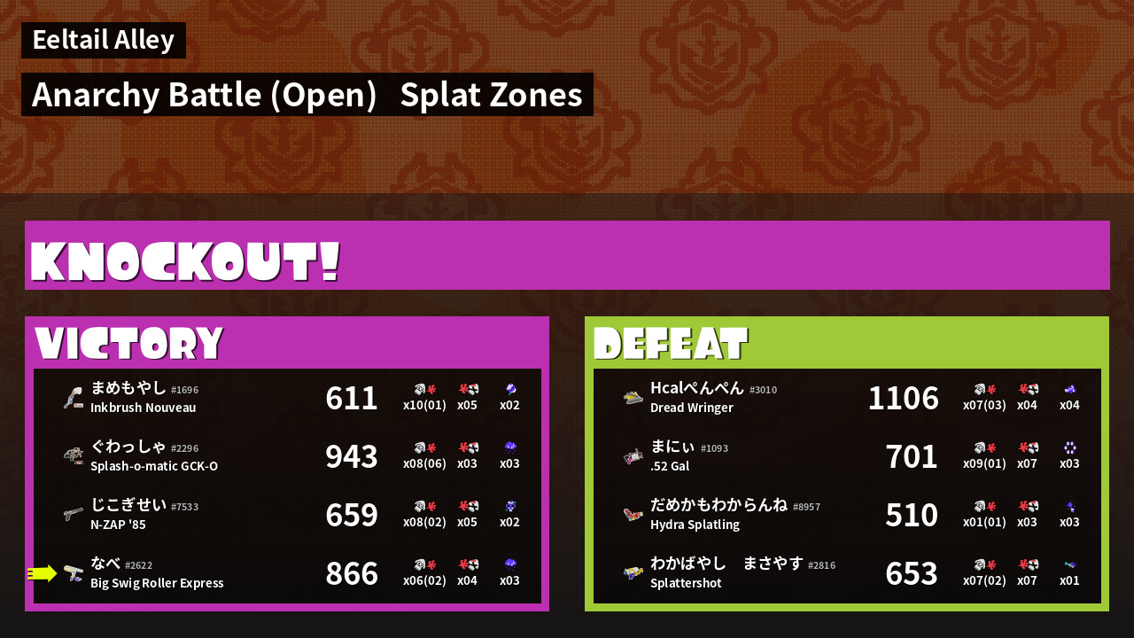 | Mode | Splat Zones - Anarchy Battle (Open) |