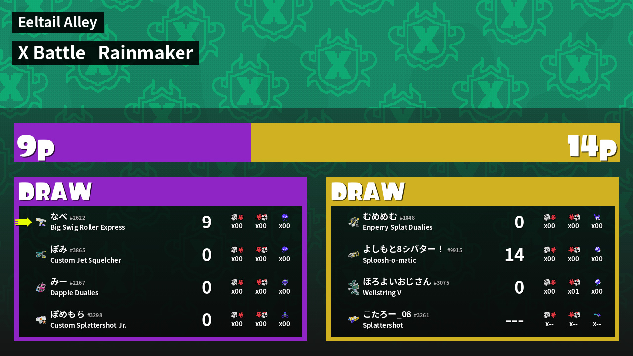 | Mode | Rainmaker - X Battle | ||