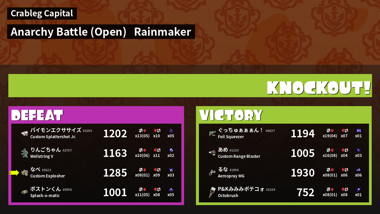 | Mode | Rainmaker - Anarchy Battle (Open) | ||