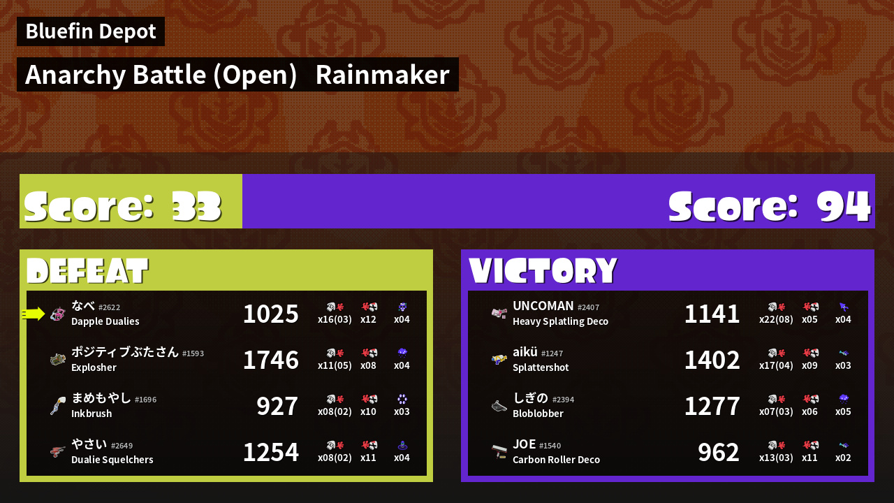| Mode | Rainmaker - Anarchy Battle (Open) | ||