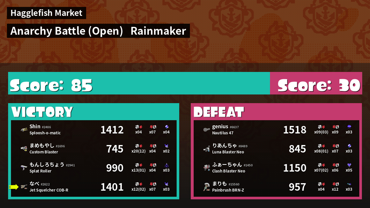| Mode | Rainmaker - Anarchy Battle (Open) | ||