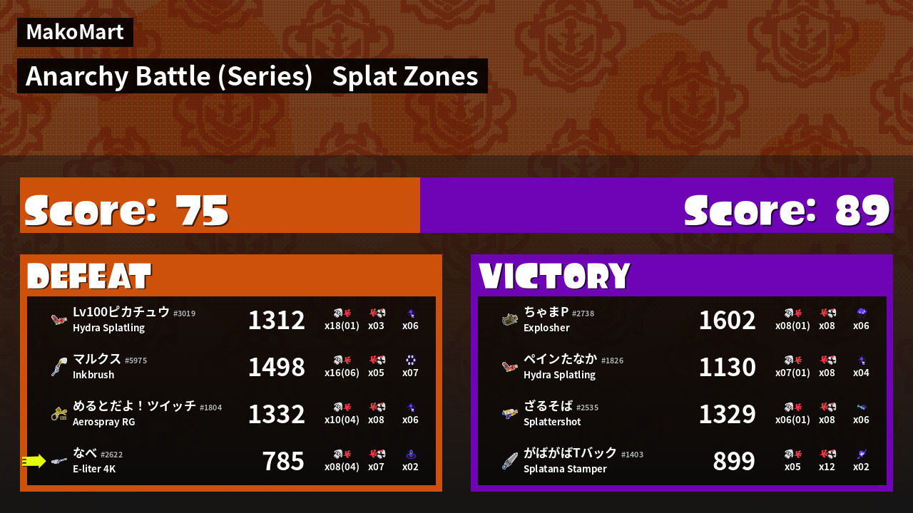| Mode | Splat Zones - Anarchy Battle (Series) | ||