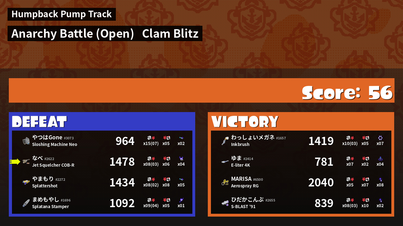 | Mode | Clam Blitz - Anarchy Battle (Open) |