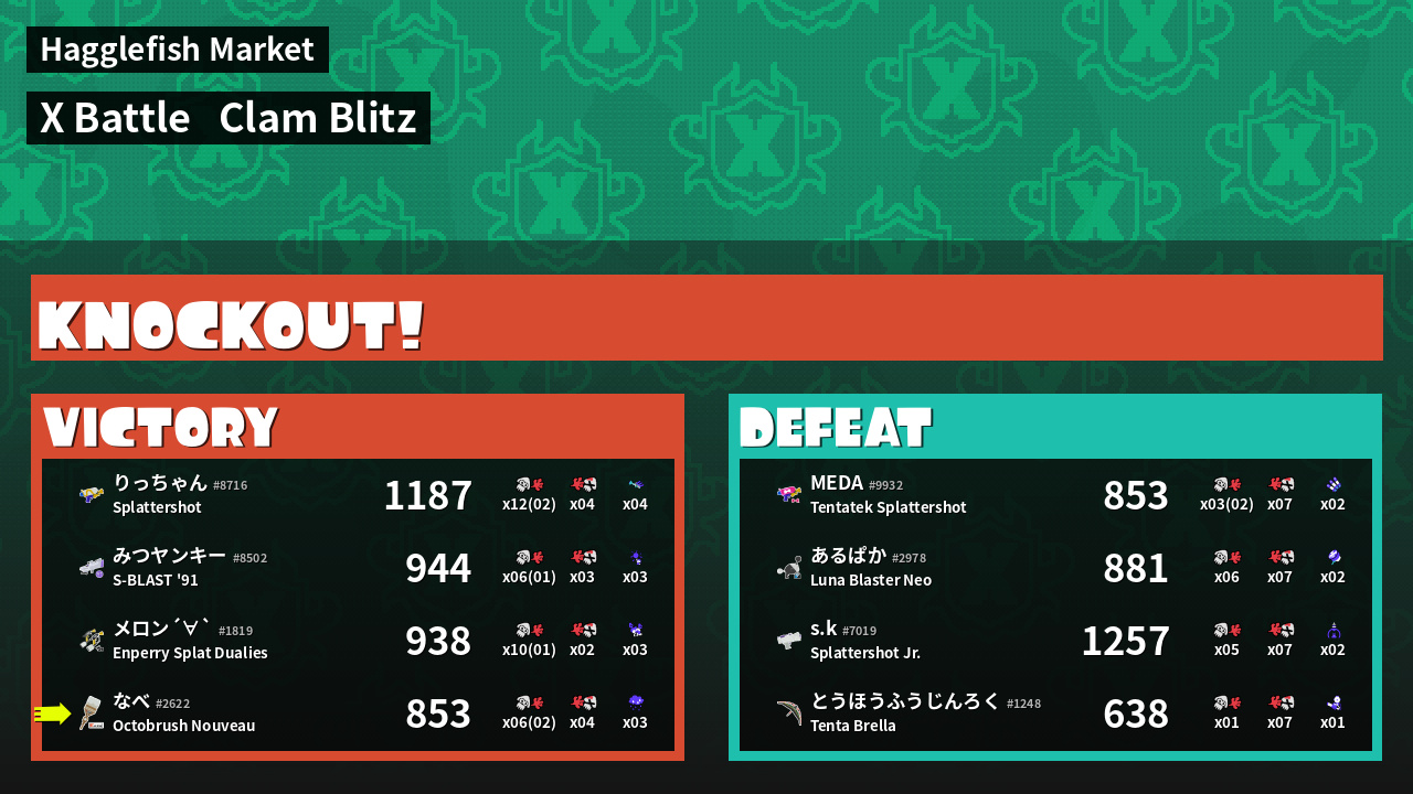 | Mode | Clam Blitz - X Battle | ||