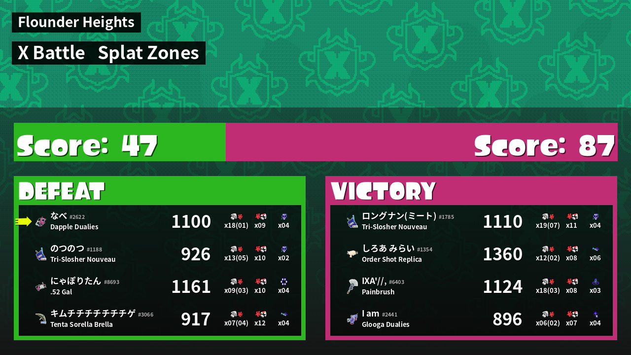 | Medals | #1 Overall Splatter #1 Splat Zone Guard #1 Popular Target | ||