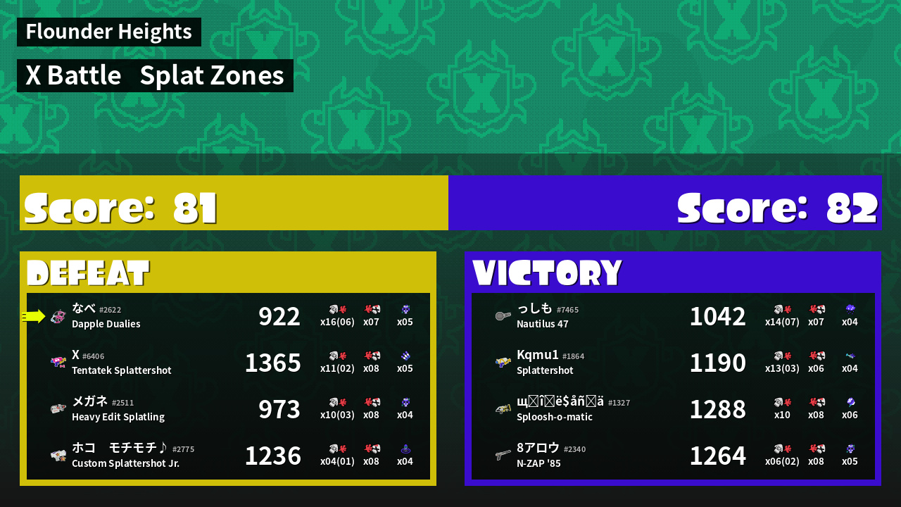 | Medals | #1 Overall Splatter #1 Splat Zone Guard #1 Enemy Splatter | ||
