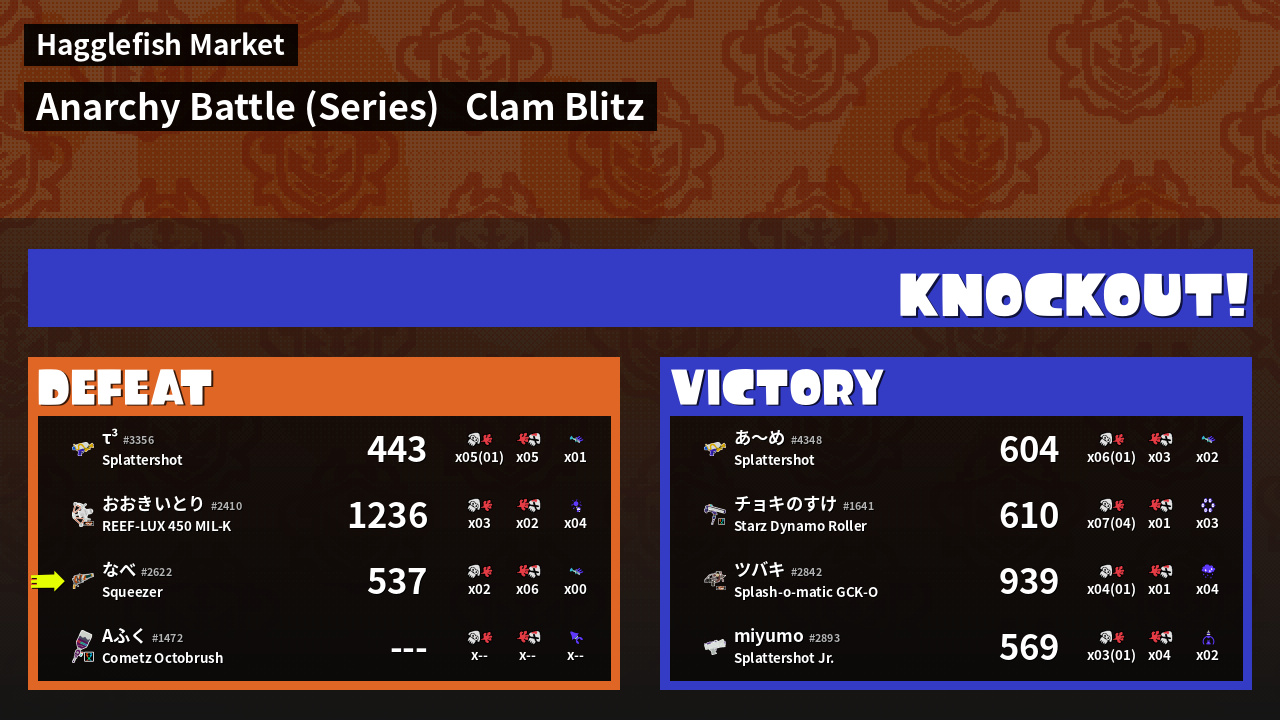 | Mode | Clam Blitz - Anarchy Battle (Series) |