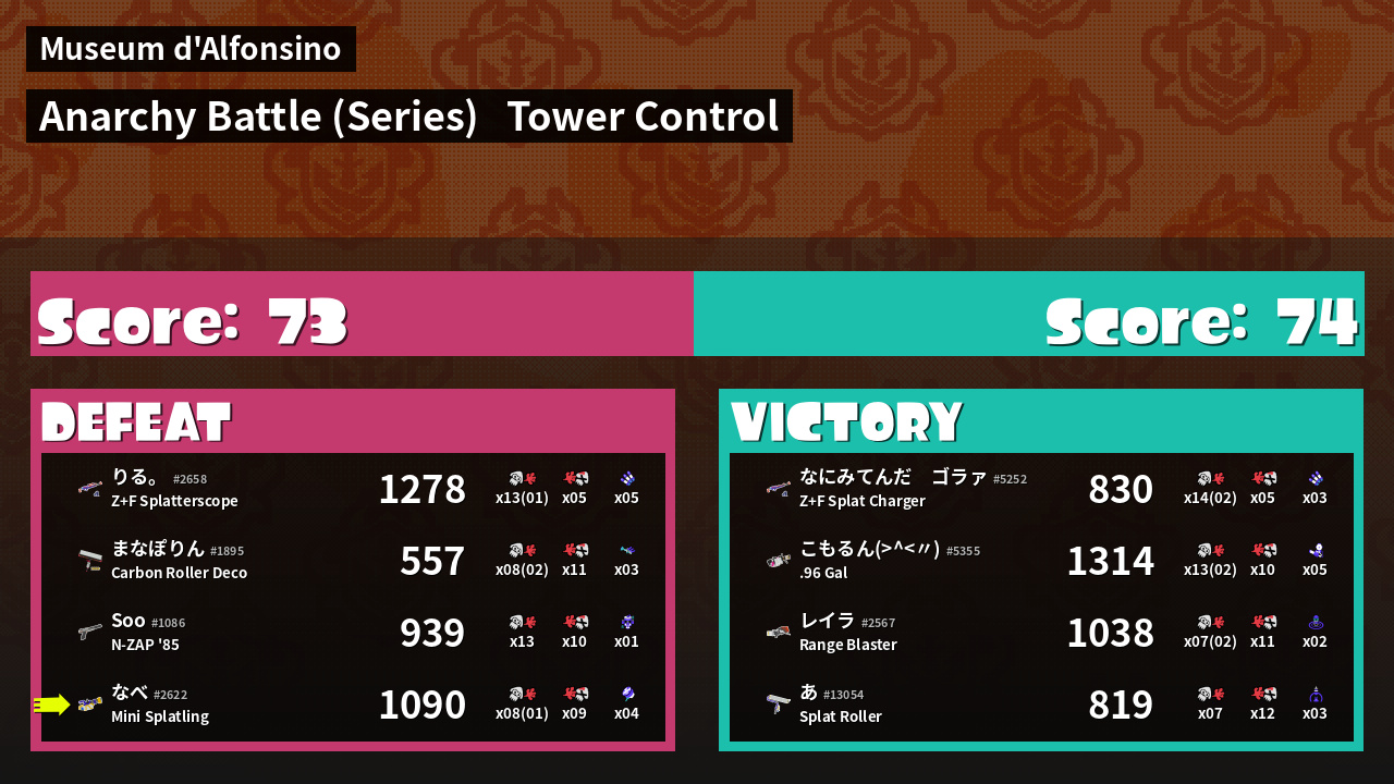 | Medals | #1 Tower Stopper #1 Ground Traveler #1 Ink Consumer | ||
