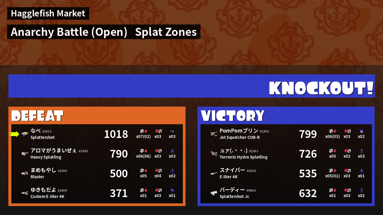 | Mode | Splat Zones - Anarchy Battle (Open) |