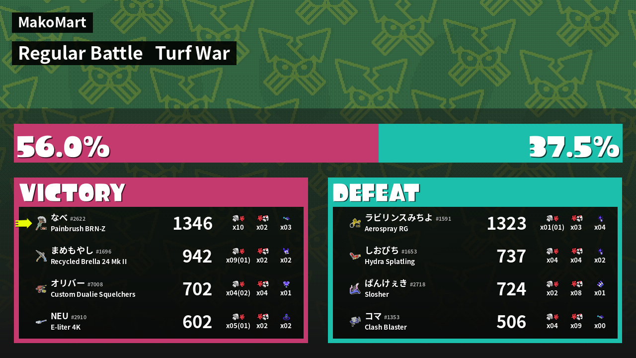 | Mode | Turf War - Regular Battle |