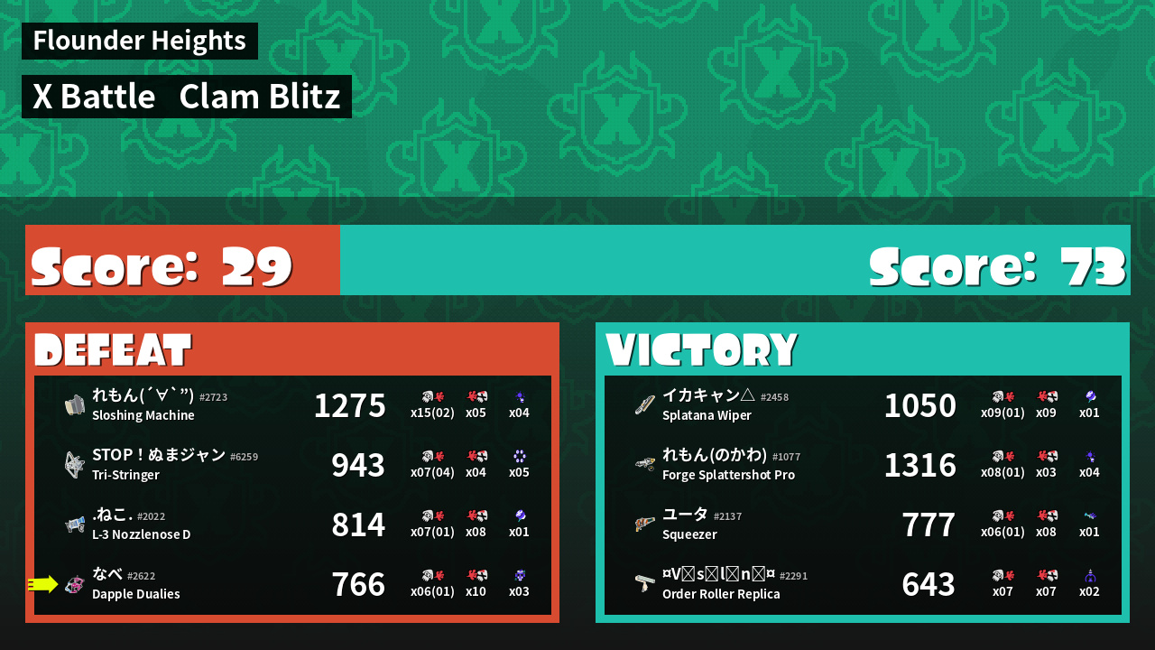 | Mode | Clam Blitz - X Battle | ||