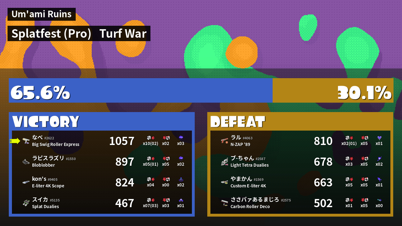 | Medals | #1 Overall Splatter #1 Turf Inker #1 Enemy-Base Inker | ||