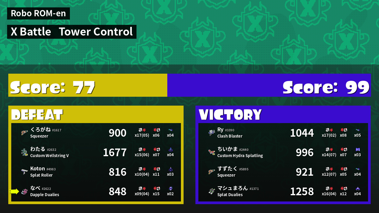 | Mode | Tower Control - X Battle | ||