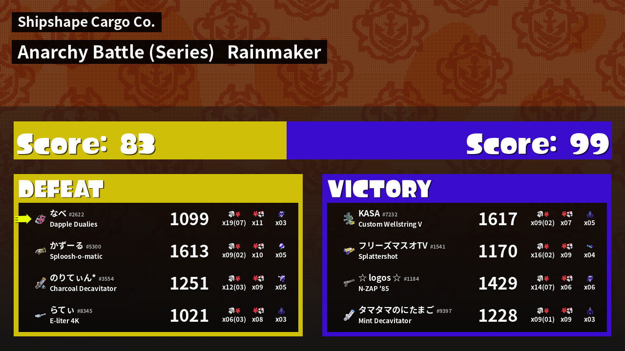 | Mode | Rainmaker - Anarchy Battle (Series) | ||