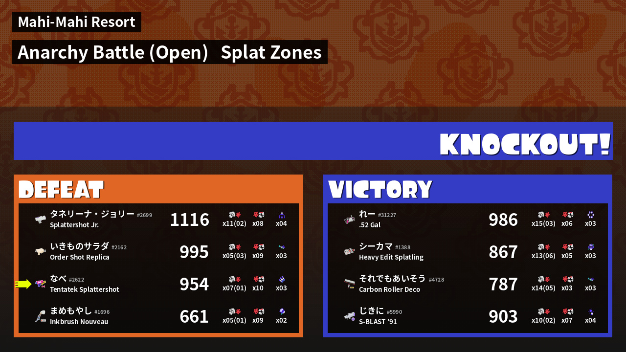| Mode | Splat Zones - Anarchy Battle (Open) |