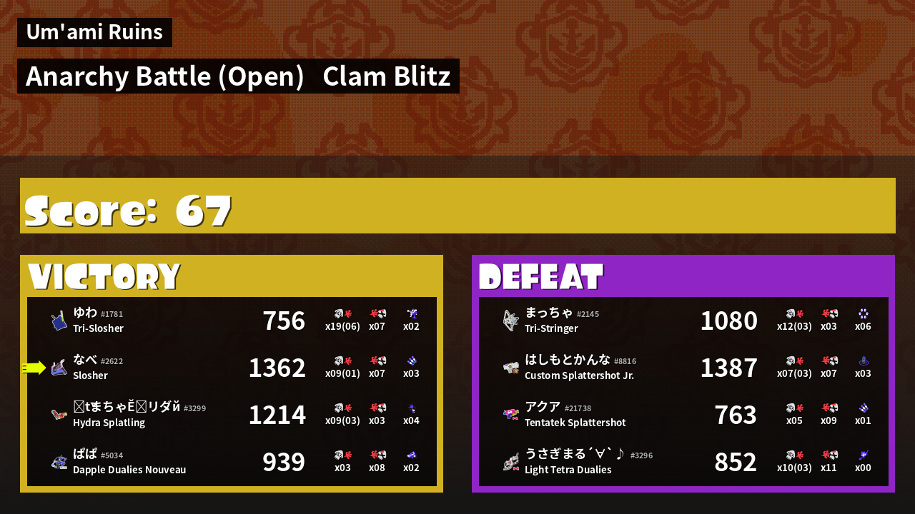 | Mode | Clam Blitz - Anarchy Battle (Open) | ||