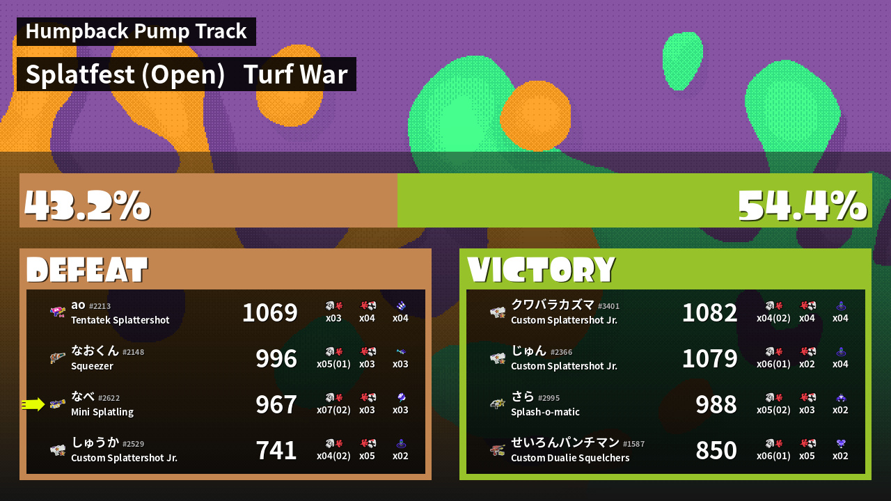 | Medals | #1 Overall Splatter #1 Enemy Splatter #1 Splat Assister | ||