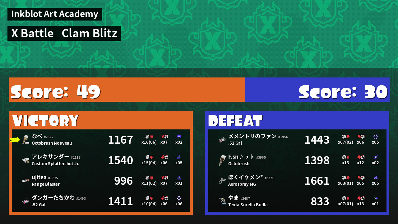 | Medals | #1 Overall Splatter #1 Score Booster #1 Super Jump Spot | ||