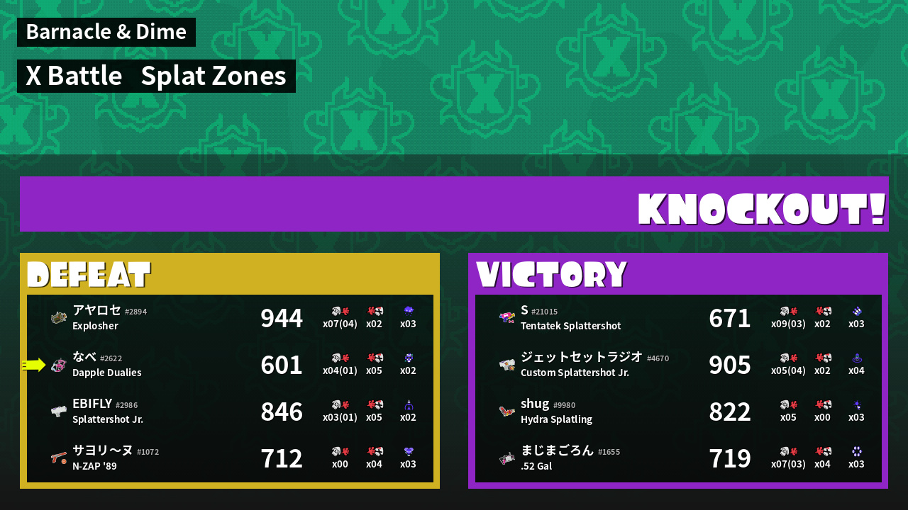 | Medals | #1 Super Jump Spot #1 Enemy Splatter #1 Splat Zone Hero | ||