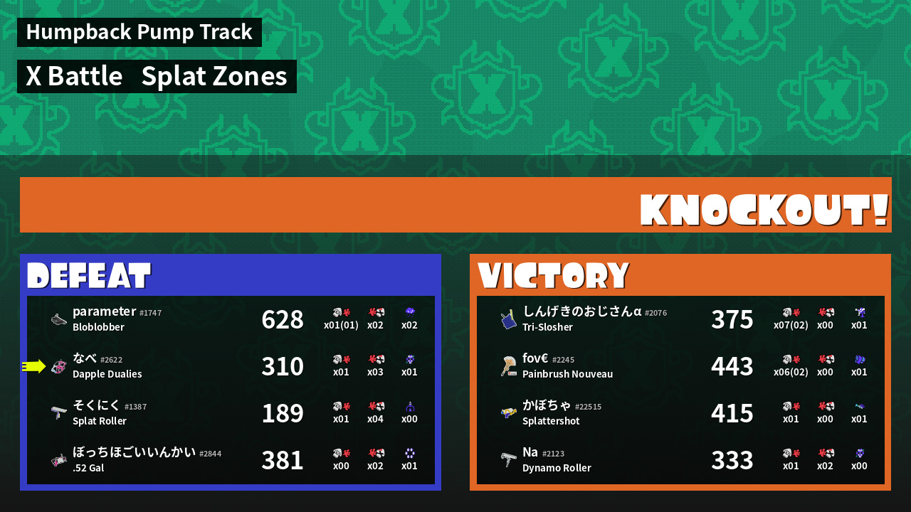 | Medals | #1 Overall Splatter #1 Super Jump Spot #1 Enemy Splatter | ||