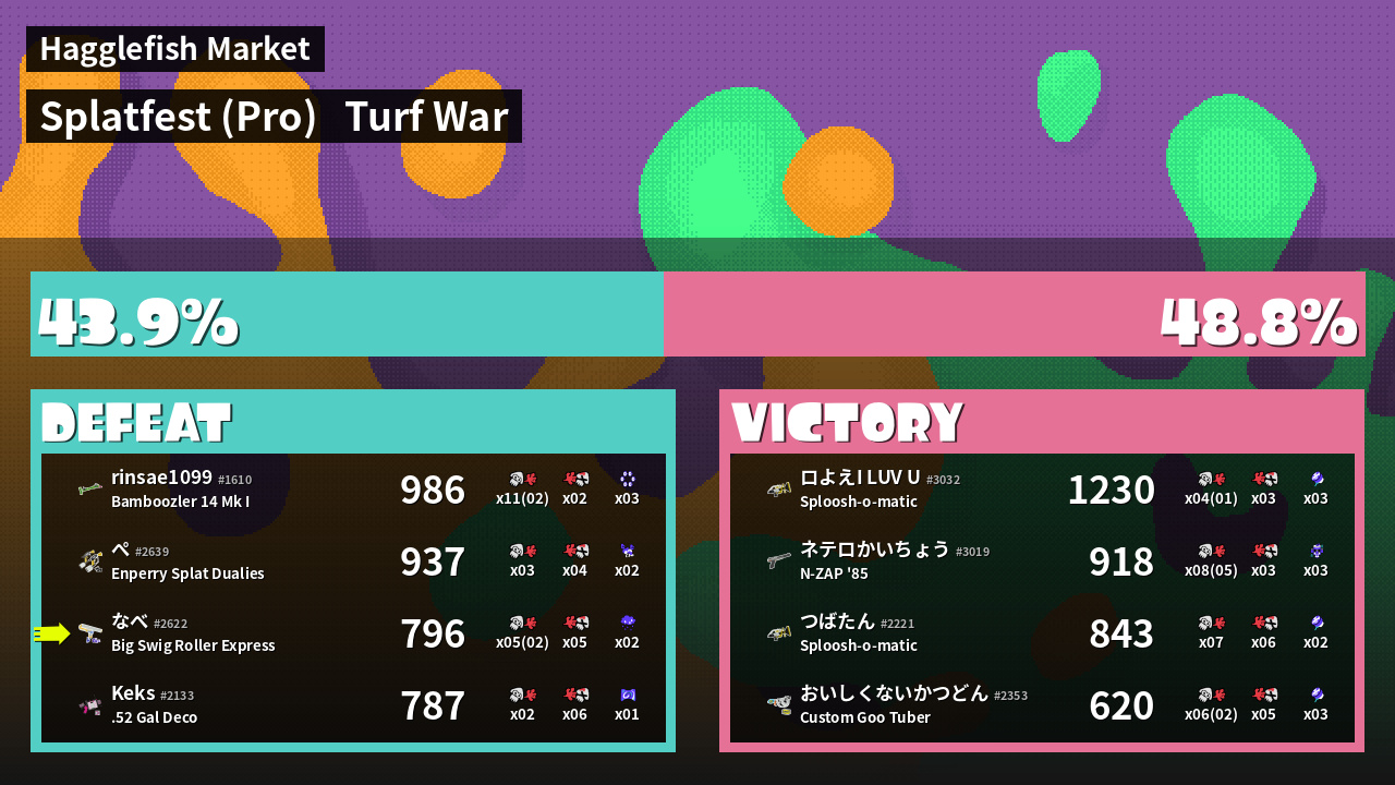 | Medals | #1 Splat Assister #1 Base Defender #1 Ink Consumer | ||