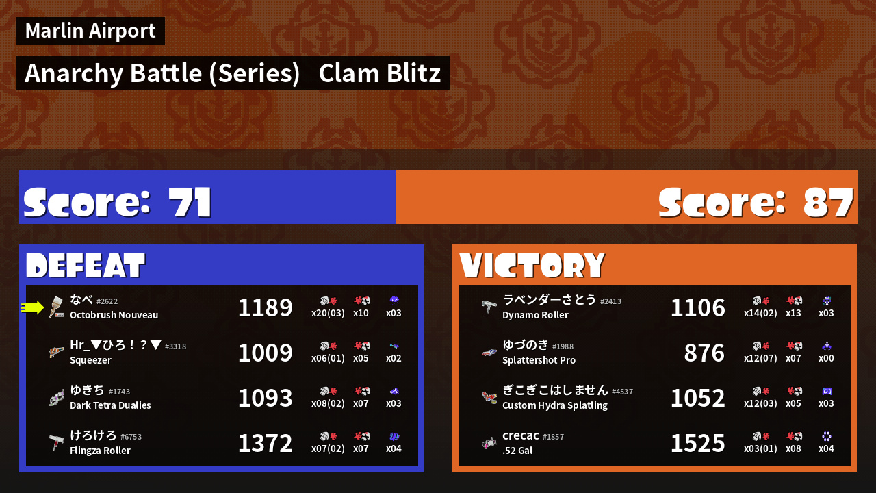 | Mode | Clam Blitz - Anarchy Battle (Series) | ||