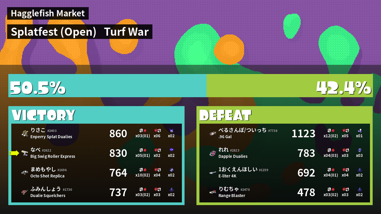 | Medals | #1 Ink Storm User #2 Overall Splatter #2 Turf Inker | ||
