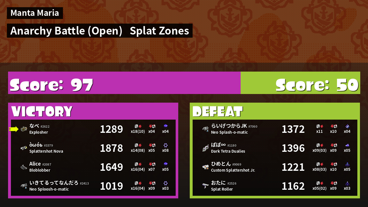 | Mode | Splat Zones - Anarchy Battle (Open) | ||