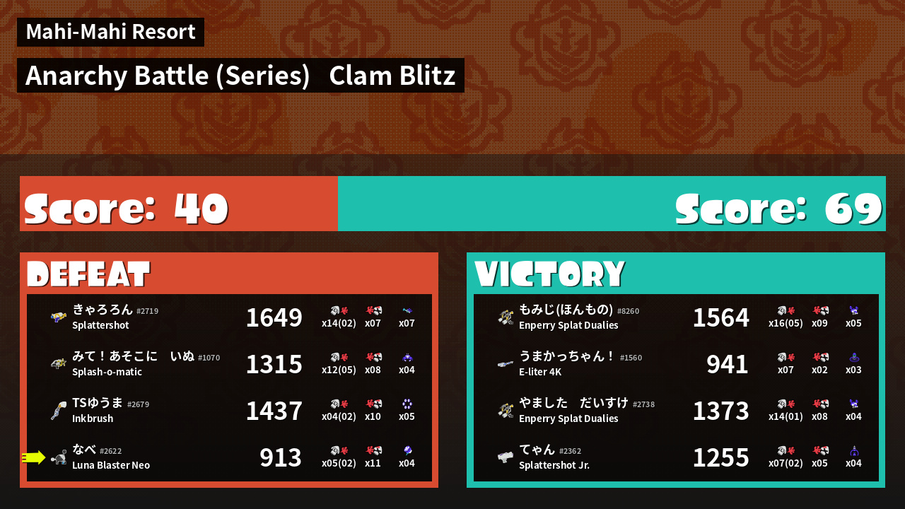 | Mode | Clam Blitz - Anarchy Battle (Series) | ||
