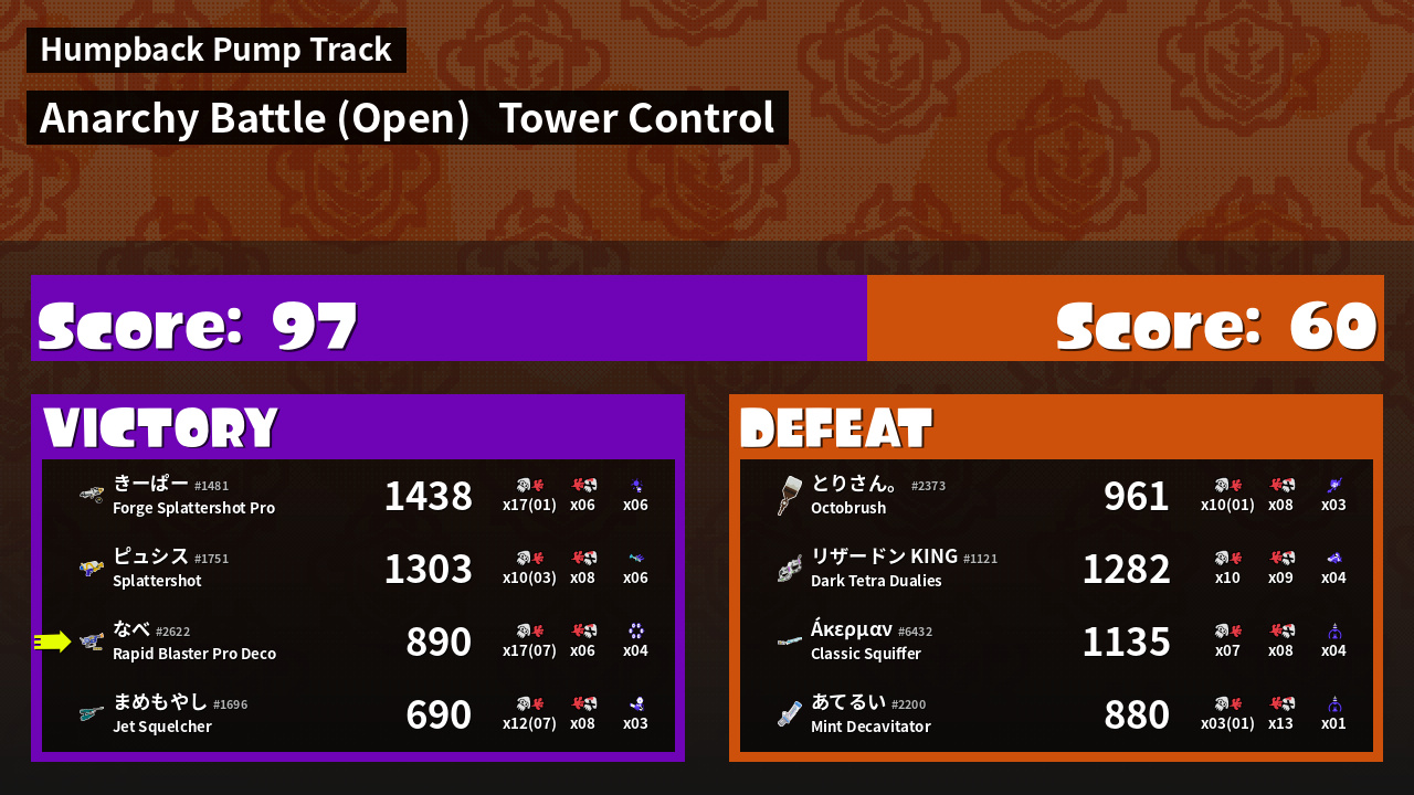 | Mode | Tower Control - Anarchy Battle (Open) | ||
