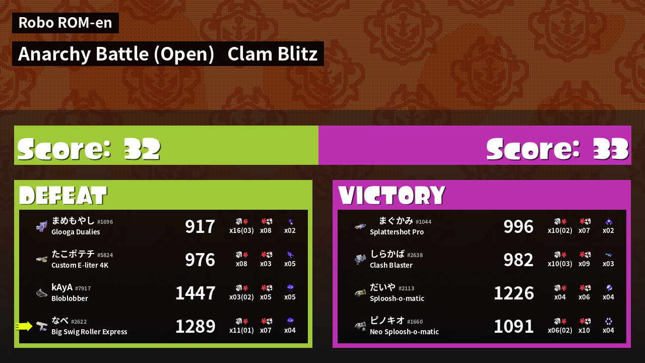| Mode | Clam Blitz - Anarchy Battle (Open) |