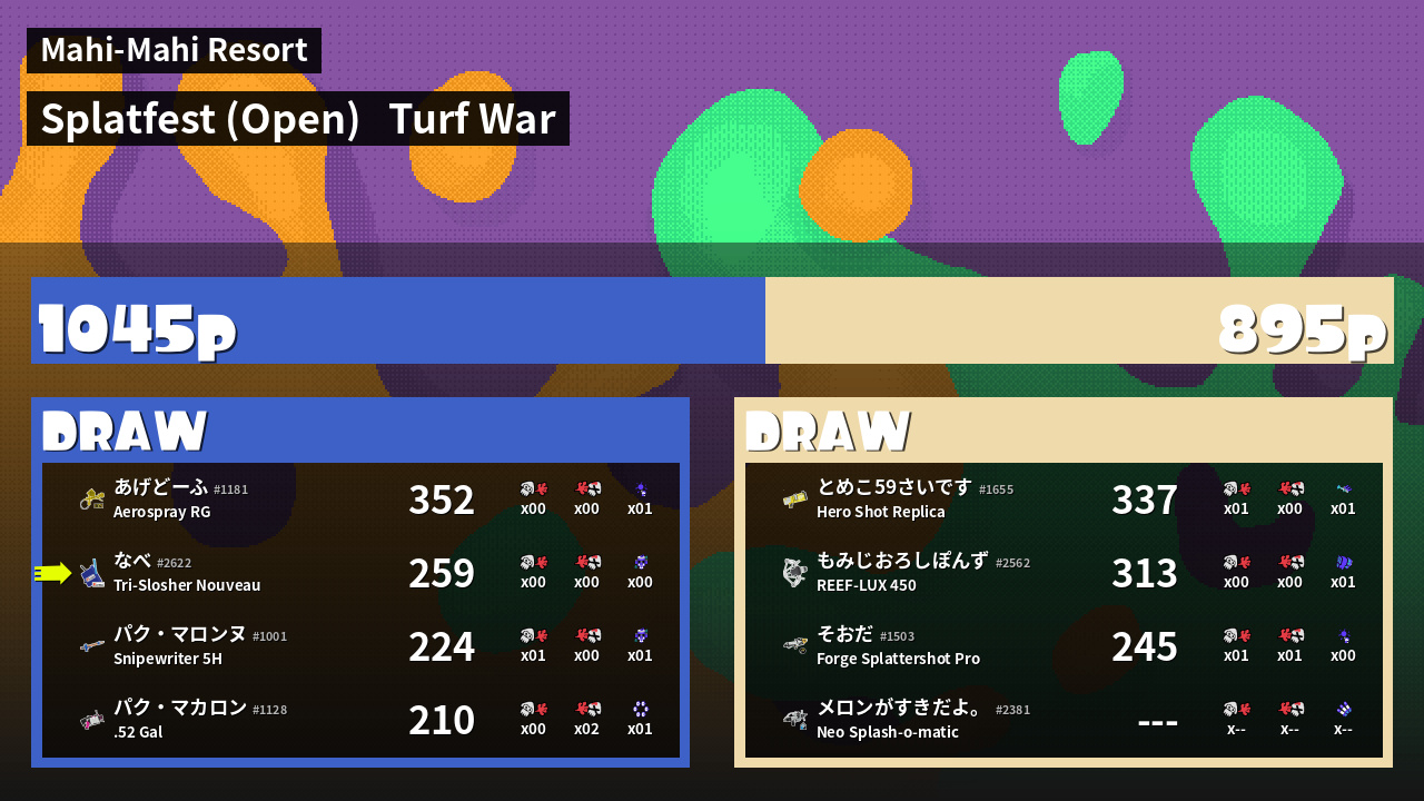 | Mode | Turf War - Splatfest (Open) | ||