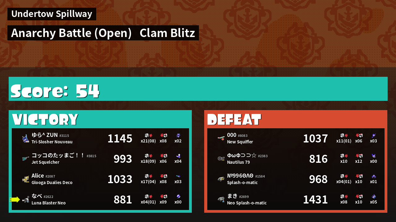 | Mode | Clam Blitz - Anarchy Battle (Open) | ||